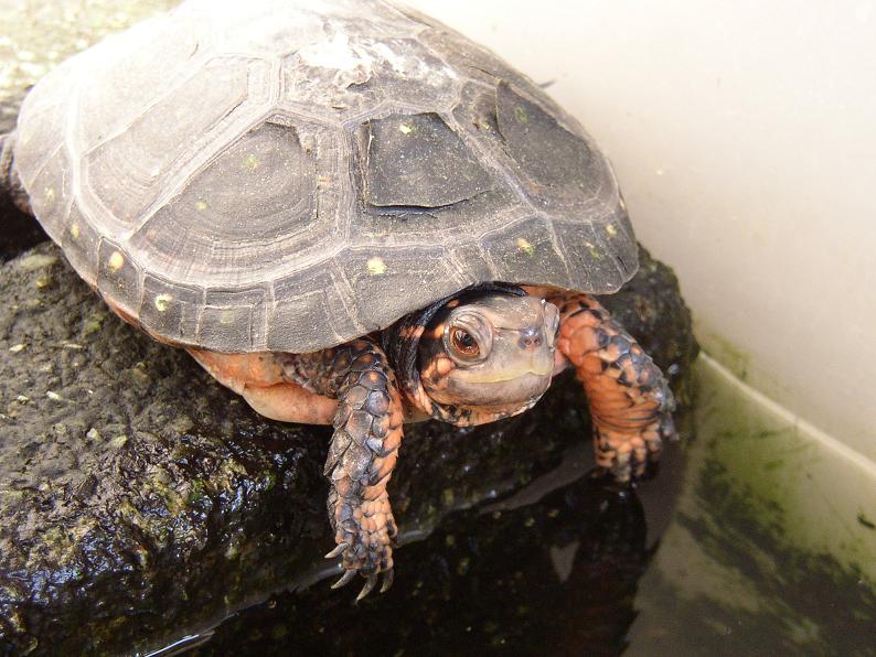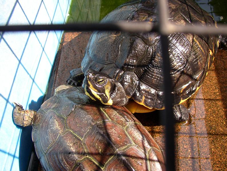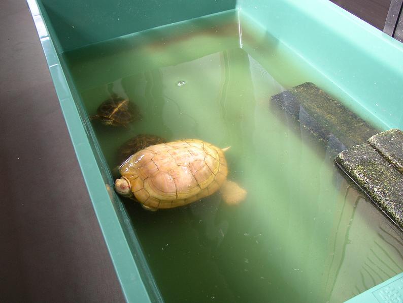何時の間にかチョビ少年も花の大学生になったけど、相変わらずこの趣味は続けていた。ある日訪れた観賞魚店。5~6cmくらいに育ったキバラガメが数匹売られていた。(おっ、キバラだ。売れ残って大きくなってんな。爬虫類専門店じゃないから売れないのかな。まあ、これもどうせオス・・・あれ?何だか尾が細くない?え?ま、まさか、メスですか!?うそ~ん!!!)