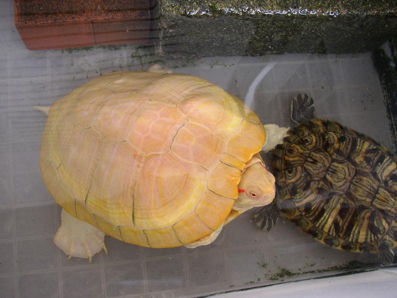 同じ両親から生まれた個体達は一様に黄色くて綺麗だったけど、こいつもやはり黄色くなって来た。スペースは取らないし、デザイナー的な楽しみ方も出来る、良いカメだね。