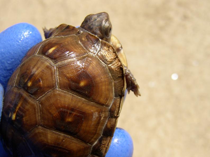 ペットとして飼う以上、見栄えにも響くので何とか防止したいところだが、市場に出回るハコガメ類(CB、WC問わず)にも多かれ少なかれ見られるし、確実な予防策はなさそうだ。最終的には気にし過ぎない事、という超消極的スタイルに、現状では落ち着くしかなさそうだ。まあ、トウブは成長すれば模様が出て来て目立たなくなるし・・・(じゃあミツユビはどうすれば?ゲフン、ゲフン・・・)。