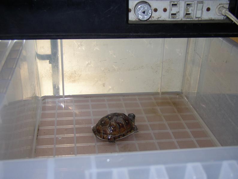 正直、あまりまめな管理はしてない。1日1回(たまに気まぐれで2回)の餌やりと水換え。それでも今日計測したら4.2cmになってた。甲羅はまだかなり柔らかい。ここのところ少し涼しくなったので、ケースをピタリ適温の上に載せている。
