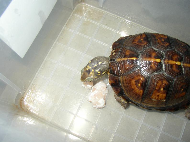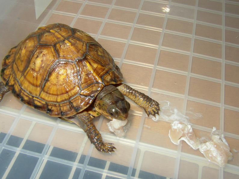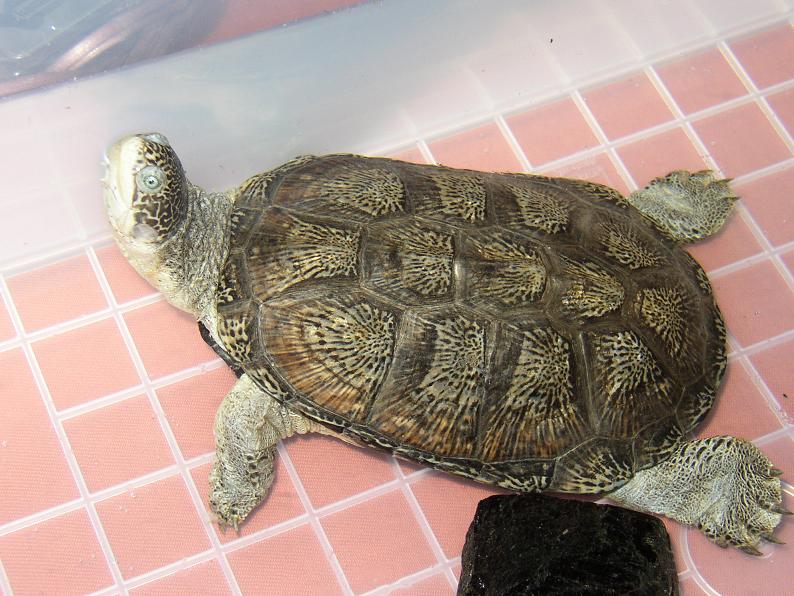 もはや書くネタがなくなりつつあるインドシナオオスッポン。何時も実物より綺麗に写ってしまうので、実際の体色を紹介。左フラッシュ有り、右フラッシュなし。