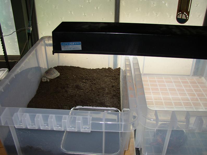先方では土を敷いて飼っていたとの事なので、それに合わせてセッティングしてみた。こういう飼い方も試したいと思ってたので、良い機会だ。これでコツが掴めたら、他のトウブ達にもやってみたい。