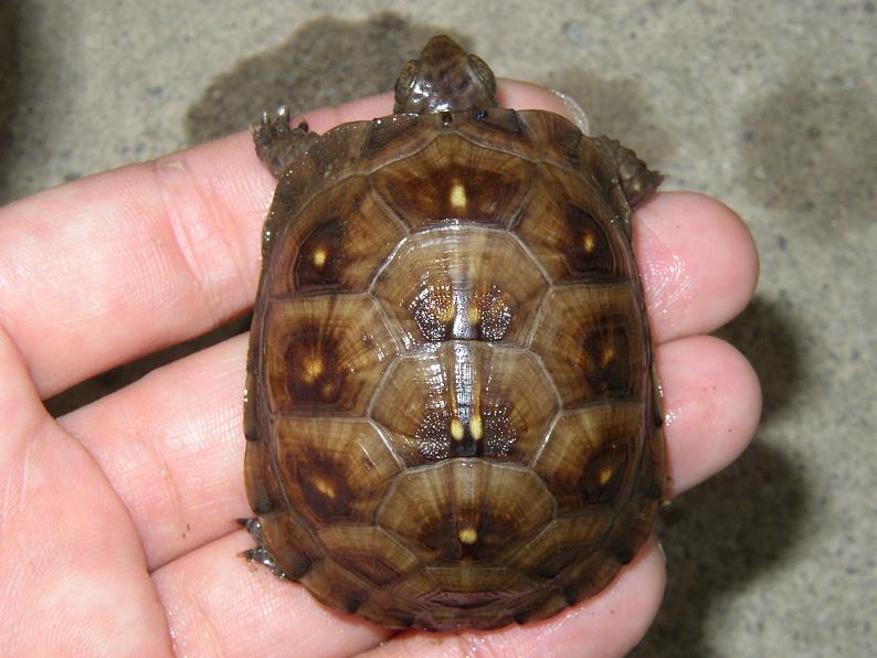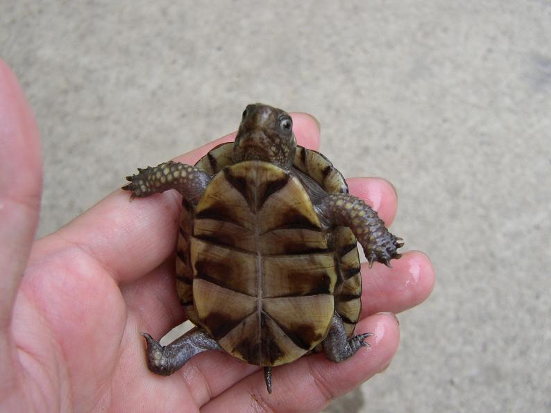 体に比して頭がかなり大きい。甲長は5.2cmほどで、うちの09CB達と比べるとかなり小さいが、むしろこれくらいの成長ペースで良いのかもしれない。