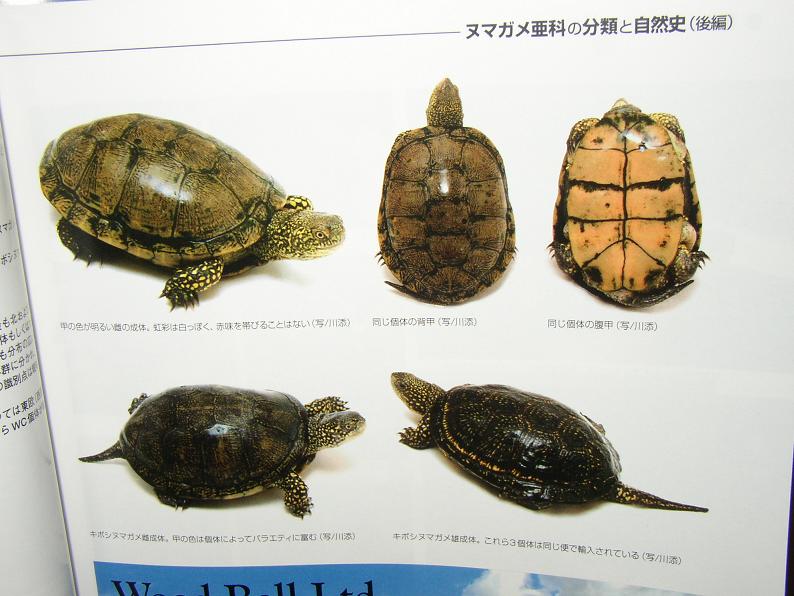 うちのヨーロッパヌマガメじゃないか!メスの背甲にあるクレーター痕で気付いた。このページの3匹揃って、一昨年に俺が都内の某店で買った。うちから撮影用に貸した訳じゃないので、入荷された頃にたまたまカメラマンが撮影したものが、今回陽の目を浴びたのだろう。写真左下のメスはこの春、冬眠明けに死んでしまい、今はこの2匹だけ。