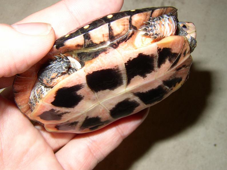 飼い方が不味かったか、甲長は生涯14cmに満たなかった。サイズだけ見るととても老齢個体には見えないけど、御覧の通り腹甲は成長線も消えてツルツル。このサイズで毎年産卵もしていたけど、孵化はしなかった。産卵数は1クラッチで1~5個。この体では流石に沢山は産めなかったのだろう。