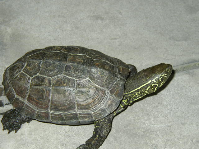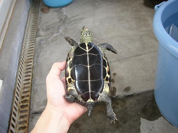 やがて飼主が色々なカメに手を出すようになり、色々と死なせる機会も増えたけど、幸いにもこいつはずっと元気だった。飼主の都合で様々なカメと同居させたけど、他個体とトラブルを起こさない優等生だった。飼主が高校生になる頃には、もはや空気のような存在。就職し、実家を離れた時も社員寮に連れて行き、ベランダで飼い続けた(お陰で会社では『カメキチ』というあだ名を付けられた)。