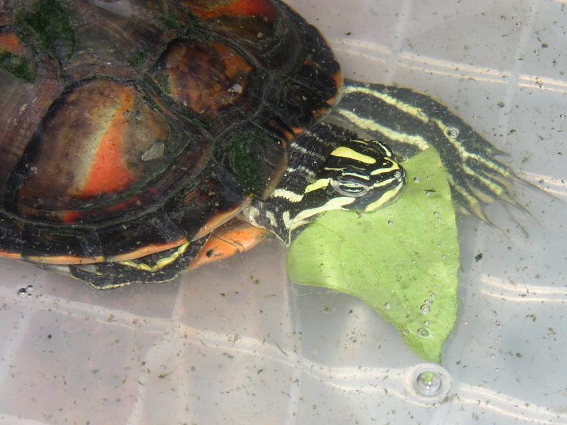 野生下で植物質を多く採るという事は知ってたものの、飼育下で具体的にどうすればいいか、そこまで考えが及ばなかった。カメの飼育に多少慣れて、配合飼料だけで大丈夫だろうという(根拠のない)慢心が、正直あった。また、この趣味をある程度知って来ると、色々な種類に目移りしたり、希少価値に揺れ動きがち。正直、フロリダアカハラの存在が自分の中で薄れてた。