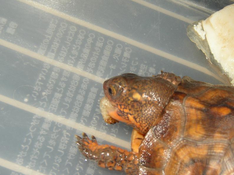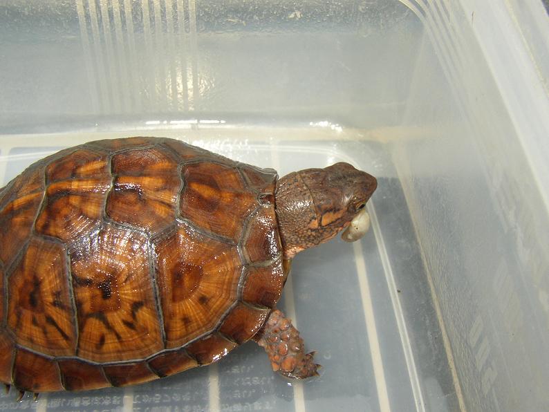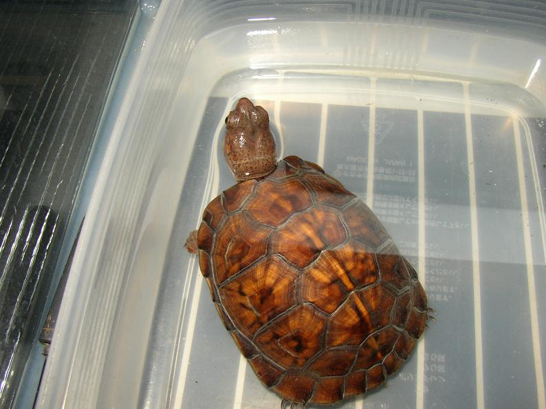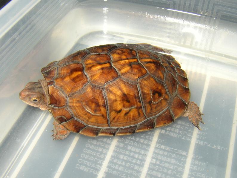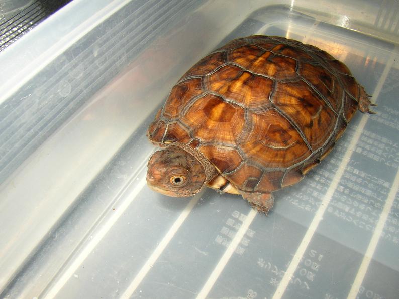 07年夏から飼っていたグァテマラ産ホオアカドロガメのオス(WC、12cm)が死んでしまった。室内で無加温越冬を試みていたが、春まで乗り切れなかった。過去2度の冬は、2~3月辺りで加温に切り替え、冬眠期間を短く済ませていた。日本の冬にもそろそろ慣れて、一冬行けるんじゃないかと思ってたが、甘かった。ちなみに、一緒に入れてるメスはまだ生きてる。やはり一般にメスの方が強いようだ。
