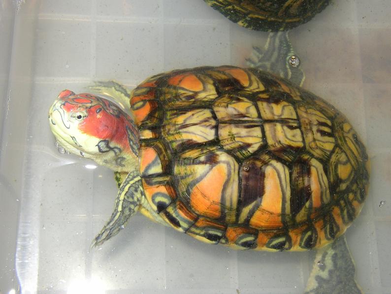 06年秋にオークションで落札したパステルアカミミ。凄く綺麗な上に、破格値だった。最後は結構な値段になるだろうと思いきや、自分以外に全く入札はなく、あっさり落札。後日、店舗に直接引き取りに行った。そこで初めて気付いたんだけど、上から見て左の目が凹んでて、薄く膜を張ったような感じ。出品画像は多数掲載されていたものの、改めて見返すと、左目が確認出来る画像は1枚もなかった(画像からそれが判ったとは思えないんだけど、全く入札されなかったのは未だに謎)。ネットは便利だけど、こういう事もある。通販全盛の時代だけど、なるべくなら自分の目で確かめて買うべき。