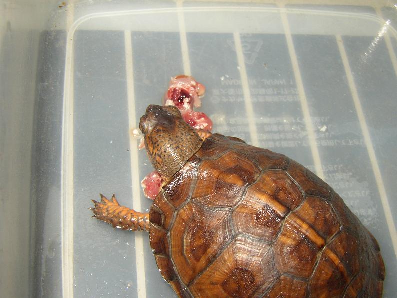 幸い4号は元気で、午後にはピンクマウスを1匹完食。でも、本当にタッチの差だったと思う。あの時、様子を見に行って本当に良かった。もし午後まで放置したら、9割方死んでたと思う。良かれと思ってやった事で大事なカメが死んだら、もうやってられない・・・。本当に、失敗と自己嫌悪の繰り返しだ。
